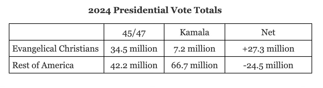 Ted, I am not an Evangelical, nor a believer in any deity for that matter, but I have true friends in those camps. My first-hand impression is that many Evangelicals consider Trump to be a "flawed vessel" for God's purpose, despite his obvious personal sins; and that his opponents, including those who are more personally moral than he is, are advocates of deeply-evil policies.